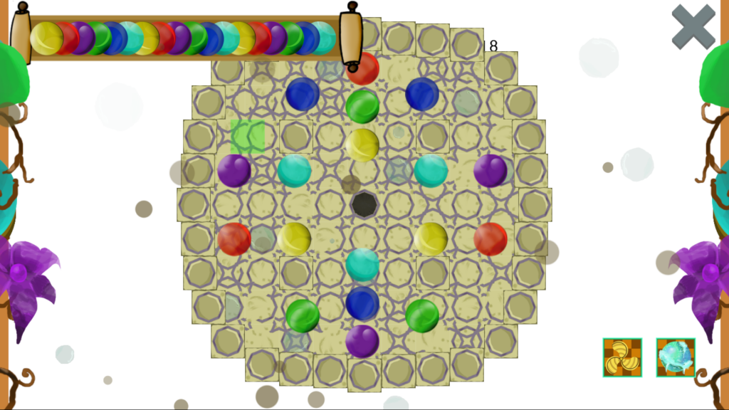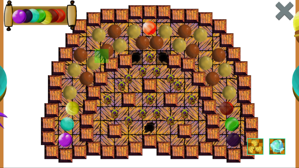 Your goal is to arrange those marbles in a given sequence, bringing each one of them in a well, in the correct order.