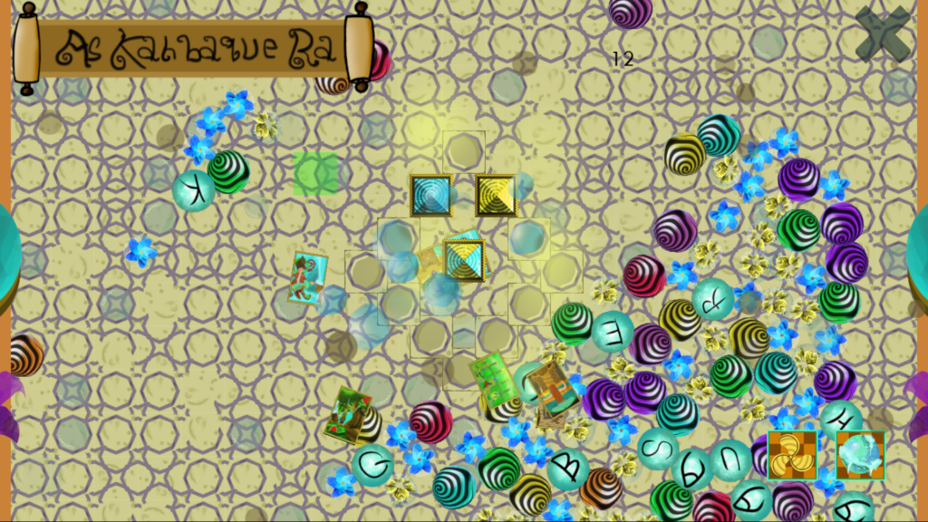 Moving and inclining your phone, you can balance and move a bunch of marbles in the room. Each marble has a value, alphabetical, cromatic, numerical or musical (an instrumental note).